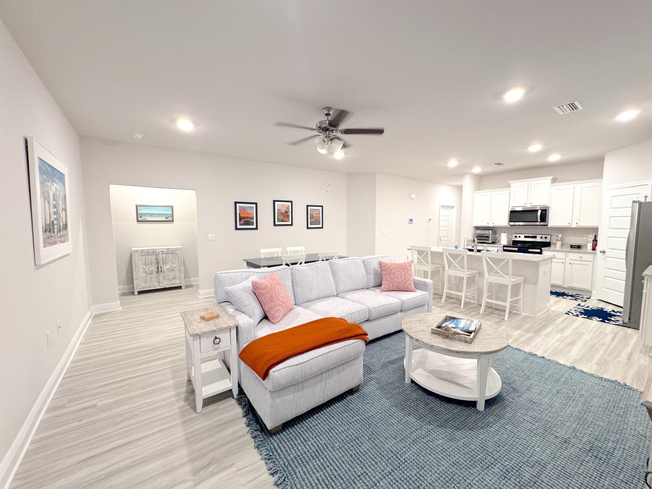 A four-bedroom fully equipped with not one, but two kitchens, open living space, screened-in porch, 2 washers/dryers, garage, outdoor shower, beach gear & a golf cart. Walk to the pool, explore trails, dine local & unwind in total comfort. Perfect for families, couples, or groups.